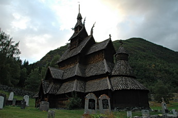 Borgund Stavkyrkje принадлежит к типу наиболее сложных и больших, с высокой поднятой крышей, драконами на коньках и узкой крытой галереей по периметру.»