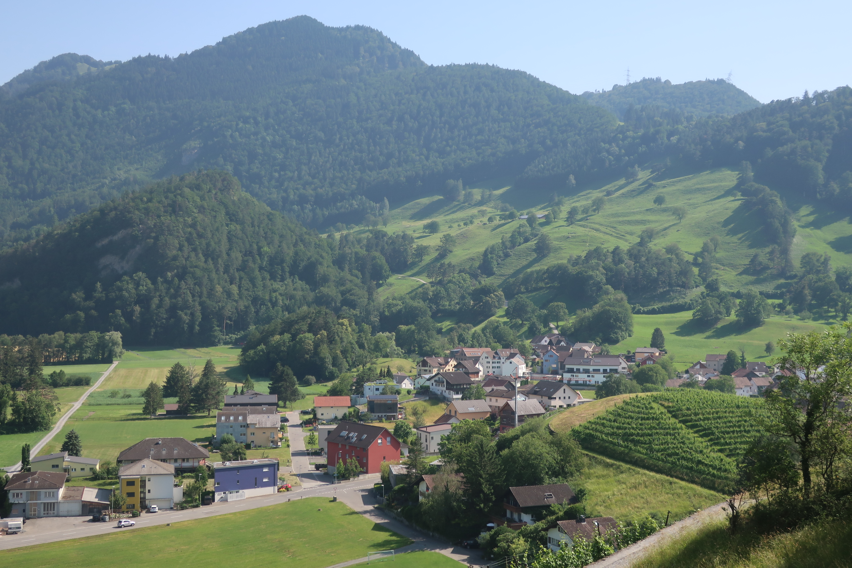 Лихтенштейн мы все-таки посетили, он был как раз по пути. На въезде в Вадуц (на улице Zollstrasse) нашли кафешку, около которой и припарковались. Сам Вадуц очень небольшой, обошли его за час-полтора. Основная достопримечательность – княжеский замок на горе, но к нему не поднимались. Больше понравился замок Гутенберг – с него открывается вид на всё княжество.