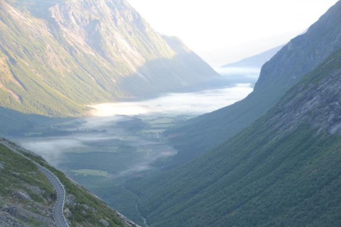 большая часть дороги проходит по берегу озер и рек, до Атлантической дороги от дороги троллей можно добраться либо через г.Офарнес, еще одна переправа на пароме, такса 800р нашими, плавает каждые 30 мин, либо в объезд по суше, но через паром быстрее. На пути встречается один платный участок за г. Греннес, один единственный за весь наш trip, а перед ним едем по туннелю под водой.