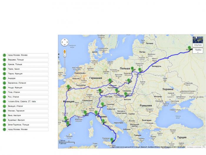 путешествие на автомобиле через все Европу из Москвы