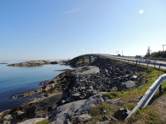 На протяжении 8,27 км шоссе проходит по семи мостам общей длиной 891 метр. Самый высокий мост Storseisundet поднят над водой на высоту в 23 метра специально ради возможности прохождения под ним судов.