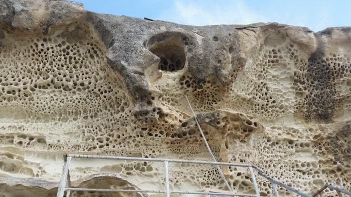 Покинув территорию комплекса и проехав вдоль залива Сарытас, мы вернулись на дорогу к «долине шаров», по самому краю которой уже проезжали пару часов назад. Но тут меня ждало большое разочарование. Смартфон после целого дня интенсивной съемки оказался практически разряжен. А портативный внешний аккумулятор для своего гаджета я ухитрился забыть в гостинице. Заряда еще хватило на несколько более-менее достойных кадров, но потом пришлось довольствоваться только личным созерцанием. Что, впрочем, не так уж и плохо – среди здешних странных образований и нужно ходить в одиночестве, вглядываясь в каждое «как в туземное лицо». Такое очень точное определение я прочитал в отчете путешественника, побывавшего в «долине шаров» до меня. Там же были приведены и разные версии происхождения этих удивительных глыб. Самая простая: в данном случае мы имеем дело именно с конкрециями, то есть камнями, образовавшимися вокруг некоего центра концентрации — например, зёрнышка, давным-давно упавшего в окаменевший ил. Самая же впечатляющая версия утверждает, что шары — это масса, сплавившаяся от «подземных молний», мощных электрических разрядов, возникающих от трения тектонических плит. Причем неправильная форма некоторых конкреций — результат выветривания уже на поверхности, а из земли они вылезают практически идеально круглыми…