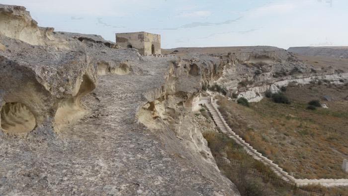 Четвертый наш день на Мангышлаке начался опять рано утром. Теперь мы должны были проехать из Актау примерно 140 километров до небольшого городка Форт-Шевченко, который расположился на длинном и узком Тюб-Карагане, «дочернем» полуострове Мангышлака. Отсюда до Астрахани около 250 километров по прямой. Севернее Тюб-Карагана есть известные Тюленьи острова, где в середине 17-го века находилось фактически первое русское поселение в этих краях — натуральное пиратское логово мятежных казаков Степана Разина. Там и настигнутых в итоге стрельцами. И именно близлежащий Мангышлак Россия в свое время пыталась использовать как плацдарм, готовя походы на Хиву. В 1846 году русский гарнизон основательно разместился на Тюб-Карагане, построив Новопетровское укрепление на холме Курган-Тас, замыкающем слева скалистую гряду, хорошо заметную над городом от въездной арки.