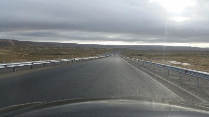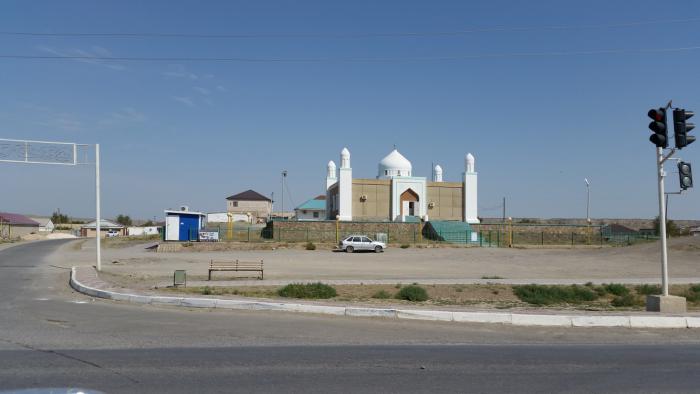 Следующим на нашем пути оказался Шетпе, административный центр Мангистауского района, который находится в 108 км к северо-востоку от Актау (это по прямой, а по дорогам значительно больше). Он расположен на пересечении нескольких важных дорог, здесь железнодорожная станция на линии Бейнеу — Жанаозен и крупный цементный завод. Село производит солидное впечатление, все здесь находится в движении, по всей округе – куда ни бросишь взгляд – что-то строят, везут, разгружают. Новые дороги подводят к райцентру сразу с нескольких сторон, и только успеваешь перебираться через специально устроенные временные съезды с одной на другую.