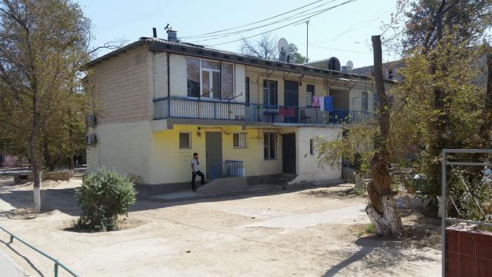 В Актау же мы остановились в небольшой и уютной гостинице «Шырак», расположенной в 3-м микрорайоне. Микрорайон один из самых первых в Шевченко, и здесь доминирует характерная двух-четырехэтажная застройка. Дома имеют своеобразную структуру, свойственную южному городу, где среднегодовая температура воздуха плюс пятнадцать «с хвостиком» градусов. Вход в квартиры – с общего коридора-лоджии, в нашем понимании так вообще просто с улицы. Во дворах везде лежит мелкий дисперсный песок, больше напоминающий пыль. Пройдешь разок и на обуви остается белесый ободок, который невозможно отряхнуть. Тротуары, такое впечатление, просто залиты цементом и по цвету не слишком отличаются от окружающего песка…