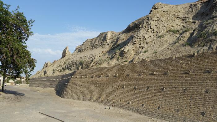 Привлекает внимание необычный силуэт минарета Кальта-Минар, словно срезанный до середины. Массивный ствол его, изысканно украшенный широкими и узкими поясами глазурированного кирпича, свидетельствует о том, что он замышлялся грандиозным, величественным сооружением, главной вертикалью города. Но после смерти правителя, при котором сооружался минарет, он так и остался недостроенным,