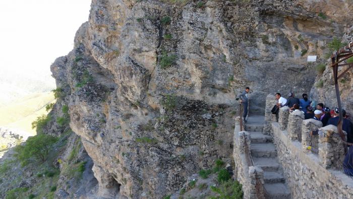 Считается, что в пещере Хазрата Дауда исполняется любое, даже самое невероятное желание. Чтобы добраться до нее, нужно преодолеть 1303 ступени, ведущие круто вверх на пик горы, где находится старинная мечеть. Затем нужно спуститься на 200 ступеней вниз, к самой пещере, которая длиной до 60 метров и высотой местами до 15. Она представляет собой темный туннель, в конце которого вроде как можно увидеть отпечатки ладоней и ступней Дауда (я, признаться, как-то не увидел; видимо, плохо смотрел). Говорят, загадывать желание нужно прикоснувшись к ним.