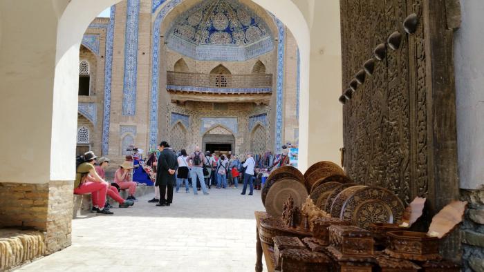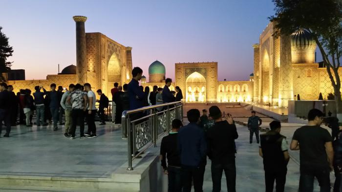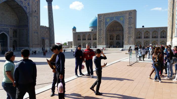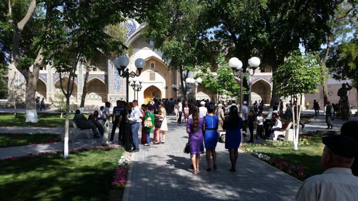 (Замечу в скобках, что не во всех городах Узбекистана так же благополучно с возможностью пройти и что-то посмотреть. В Самарканде, например, несколько удивил дисбаланс между ценами для прохода в монументальные медресе площади Регистан: Улугбека, Шердор и Тилля-Кари — для «местных» и для иностранцев. Граждане Узбекистана могут приобрести билеты по 2000 сумов, а для «всех прочих» эта цена в пятнадцать (!) раз больше — 30000 сумов. Хотя ведь не все иностранцы такие куркулистые, как американцы или, допустим, германцы. Вокруг и иностранных студентов с совершенно очевидными тощими кошельками тоже было множество)