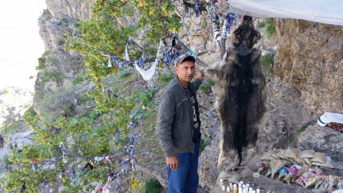 На протяжении всего подъема вдоль лестницы тянутся торговые ларьки, где можно купить воду, лекарственные горные травы, шкуры диких животных и разные сувениры. Но преодолеть более 3000 ступеней (туда и обратно) по силам не каждому паломнику. Местные жители предлагают взобраться на гору на ослике или лошади. Эти варианты мы решительно отвергли, поглядев на весьма пожилых дедушек и бабушек, упорно преодолевающих ступень за ступенью. Одному из наших попутчиков, которого пришлось обогнать где-то на середине подъема, оказалось ни много ни мало 84 года. Конечно, он вскоре отстал от нас. Но судя по энтуазизму, с которым седобородый бабай (старик по-узбекски) преодолевал путь наверх, до пещеры он обязательно добрался…