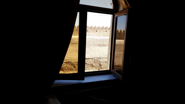 Наш отель «Исламбек» находится за крепостными стенами, внутри старого города. Одно из окон в номере отеля смотрит прямо на городскую стену: вид, прямо скажем, не слабый! И практически все архитектурные шедевры Хивы как раз сосредоточены в её городском ядре Ичан-кале. Далеко ходить не нужно, в отличие от Самарканда… Ичан-кала — настоящий средневековый «город в городе»; в окружающих его мощных стенах четверо ворот, по каждой стороне света. От западных ворот к восточным пролегает одна из главных магистралей, вдоль которой сосредоточены основные впечатляющие сооружения.