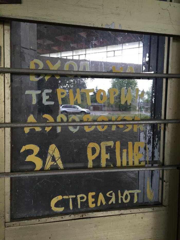 С панорамного окна на взлетную полосу можно было увидеть несколько самолетов, вертолетов и все они действующие! Но так же и можно увидеть разгромленную гражданскую авиатехнику, которой больше.