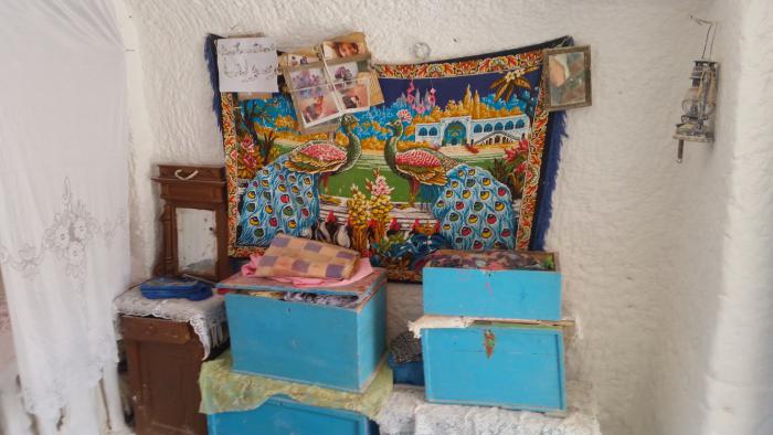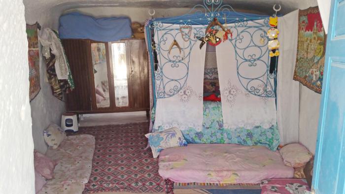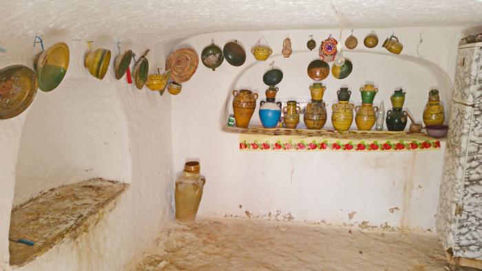 Так вот, главная здешняя достопримечательность, как уже было сказано – подземные дома. Комнаты выдалбливались вокруг вертикального колодца глубиной до семи метров и диаметром в пределах 10 метров. Небольшой крытый переход уводит с уровня земли вниз, во двор. Нередко на втором этаже вырубали второстепенные помещения меньшего размера, куда вели лестницы — чаще всего эти комнаты использовались как кладовые для зерна. Берберы селились в подобных домах, поскольку там возможен естественный контроль температуры, что было крайне важно в этих засушливых местах.