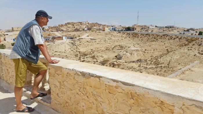 Сфотографировавшись в полностью реалистичных ландшафтах планеты Татуин, двигаемся дальше. Кстати, кинематографический Татуин получил своё название от настоящего тунисского города Татавин (варианты транслитерации: Татуин, Татвин, Татауин, а также Фум-Татахвин и т.п.) — он расположен в двух с половиной сотнях километров от декораций.