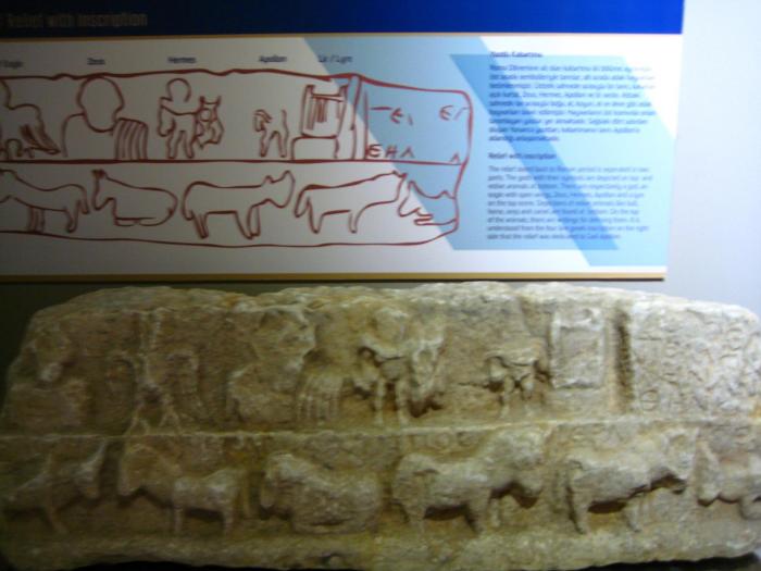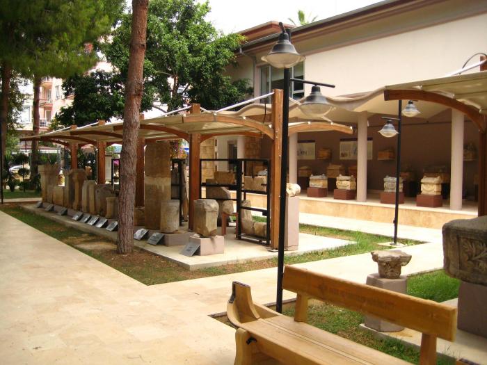 Немного о музее. Находится рядом с пляжем Клеопатры. Открыто ежедневно, кроме понедельника, с 9.00 до 12.00 и с 13.30 до 17.30. Музей был открыт в 1967 г. Наряду с античными находками есть интересный этнографический отдел. В отделе археологии в хронологическом порядке выставлены памятники культуры государств: Урарту, Фригии, Лидии, Древней Греции, Древнего Рима и Византии.