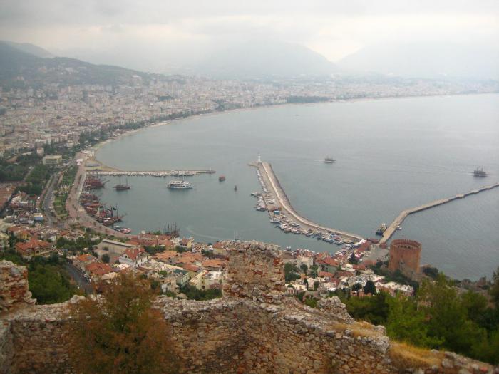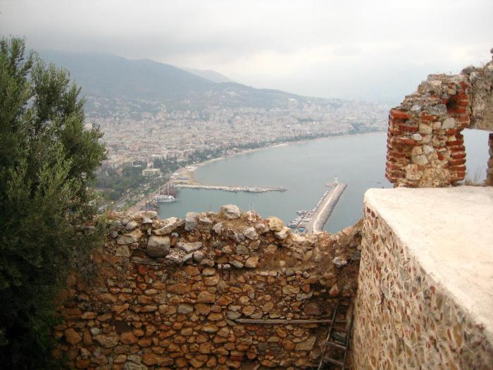 От главных ворот открывается прекрасный вид на гавань Аланьи и Красную башню — Кызылкуле (Kızıl Kule):
