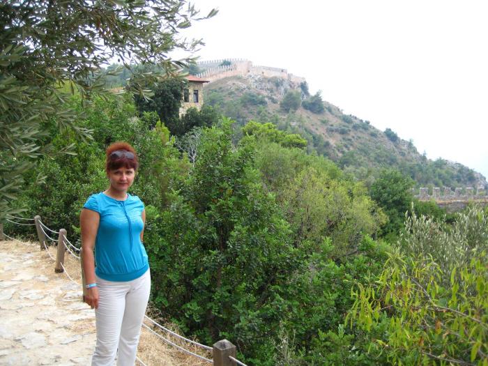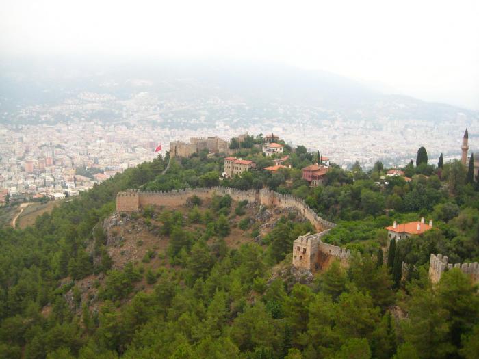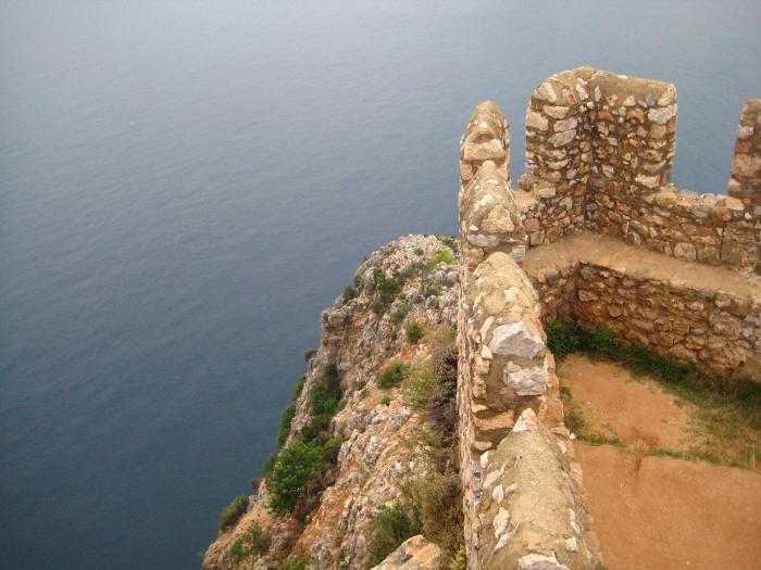 Доехали до Аланьи минут за 25. При въезде ориентируемся по указателям, они расставлены на каждом перекрестке, так что заблудиться невозможно. Первым делом решаем осмотреть аланийскую крепость, или как ее еще называют — цитадель. Это величественное инженерное сооружение со стенами 8-километровой длины относится к византийским временам. Ее строительство длилось 12 лет. Крепость разделена на 4 части: внутренняя (iç kale), внешняя (dış kale), средняя (orta kale) и Эхмедек (Ehmedek)