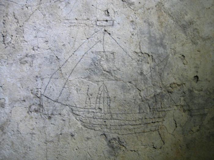 Одно из первых граффити на стене, на морскую тему: