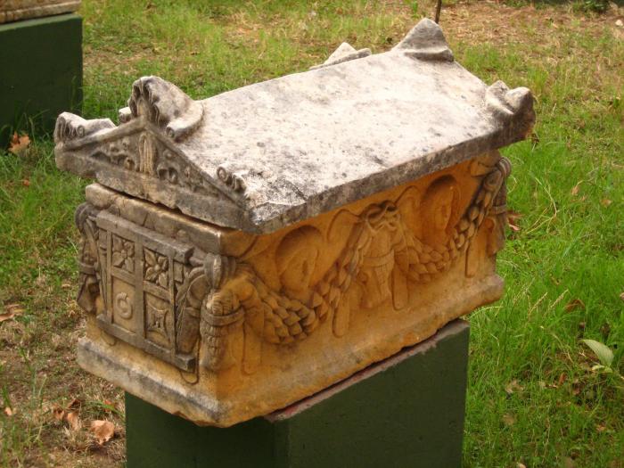 Местные жители, зная, как трудно раскопать землю в скалистых породах, сжигали умершего, а пепел помещали в специальные сосуды из известняка, имевшегося в большом количестве в этой местности. Сжигание покойного должно было принести бессмертие его близким и одновременно было свидетельством уважения. Сосуды для пепла — различных размеров, относящиеся в основном к римскому и византийскому периодам, изготовлены в виде саркофага, крышки же имеют форму седла.