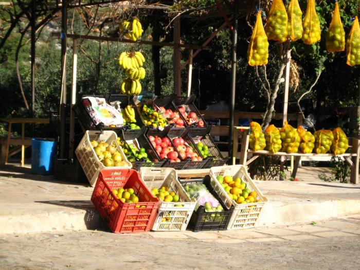Регулярно попадаются фруктовые развалы. Сейчас здесь сезон гранатов и мандарин:
