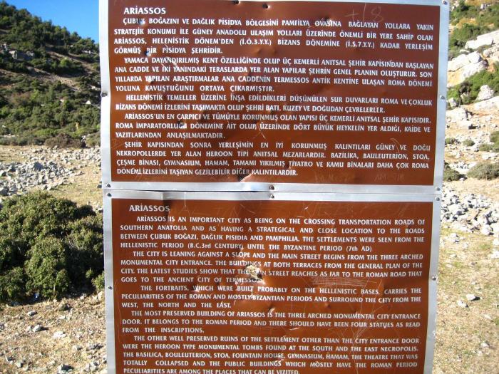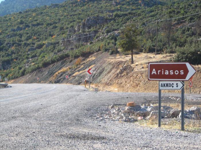 Примерно через 40 км встречается указатель на античный город Ариассос:
