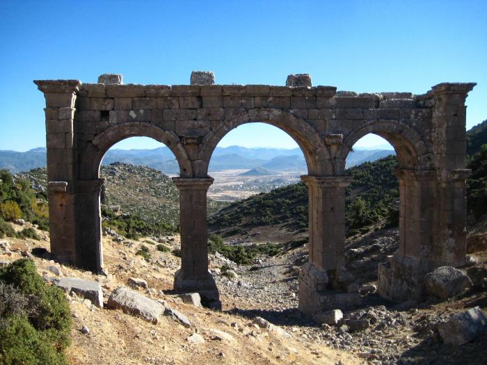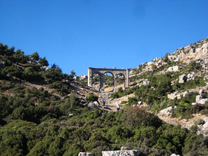 Арка в Ариассосе напоминает римский виадук) Несколько параллельных горных цепей в дымке — это фантастически завораживающее зрелище.