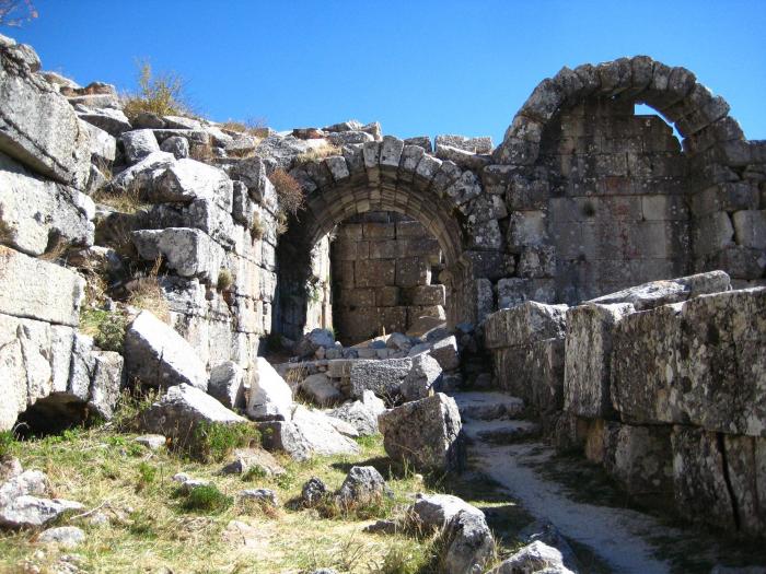 Ариассос был полностью разрушен землетрясением, произошедшим в поздний римский период. Но удивительным образом сохранились входные трехарочные городские ворота, построенные во времена римского владычества: