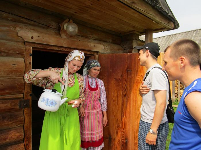 Чтобы поближе познакомиться с национальными традициями удмуртов, я решил побывать в архитектурно-этнографическом музее-заповеднике «Лудорвай», расположенном в 20 км от Ижевска, и в 2 км от одноименного поселка Лудорвай. Стоимость экскурсии в составе группы 150 руб, с дегустацией национальных блюд и напитков 350 руб. Я, конечно, выбрал с дегустацией.