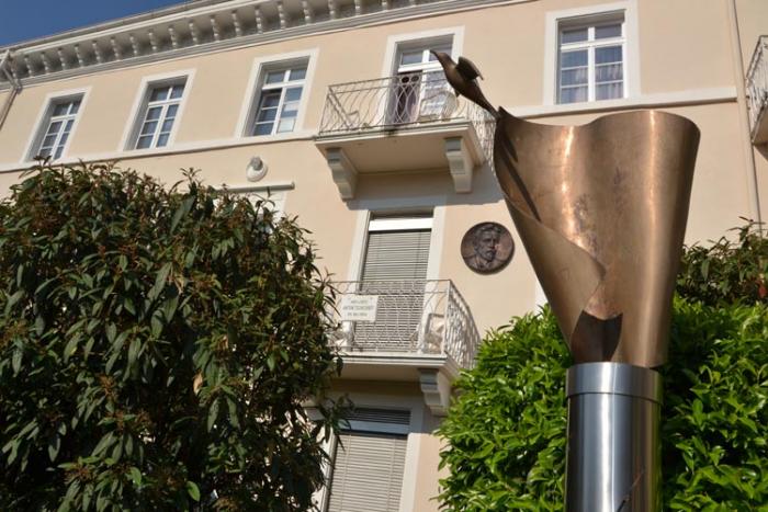В городе проживал А. Бартольди, архитектор, автор статуи Свободы lady Liberty, установленной на острове в Америке. Прототипом была мать архитектора, а эту статую установили здесь, чтобы не портить облик старого города. Установлена в 2004 году на годовщину смерти скульптора. Изготовлена из резины, имитирующей цвет окисленной меди, покрыта лаком, на котором нельзя оставить надписи, правда, и не пришло в голову написать что-то на ней. Машины все притормаживают, сигналят. Парковались справа у аэродрома, по пешеходным переходам перешли. Поскольку рядом магазины, и в воскресенье были закрыты, поток машин был меньше.
