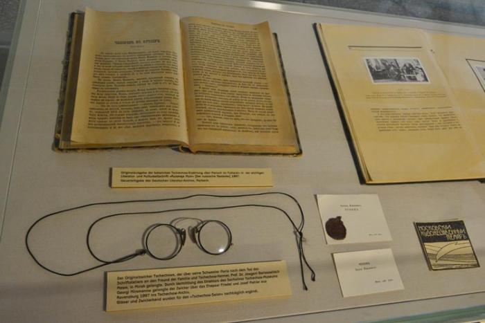 Некоторые вещи, переданные из российских собраний, выставлены в Литературном салоне.