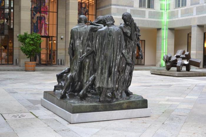 Для меня самое сильное потрясение в Базеле был Художественный музей. А точнее, одна его картина. «Мёртвый Христос в гробу» — картина художника Ганса Гольбейна Mладшего. Мы когда в институте учились, про нее говорили в связи с Достоевским. Его герой говорит, что после этой картины можно и вовсе веру потерять. Действительно, впечатление жуткое. Говорят, художник писал тело Христа с утопленника. А еще во дворе музея стоит одна из десяти реплик роденовских «Граждан Кале».