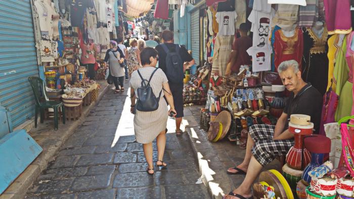 В медине Туниса расположено много рынков, традиционно специализирующихся на продаже определенной группы изделий — обуви, одежды, керамики, продуктов питания, пряностей, оружия и прочих предметов, необходимых в быту или в каких-то особых случаях. Нередко здесь же расположены мастерские, где производятся все эти вещи. Весьма хороши местные берберские серебряные украшения, впечатляет и тунисская керамика, а также разнообразные изделия из металла с узорчатой чеканкой: кувшины, вазы, блюда, чаши, подсвечники,