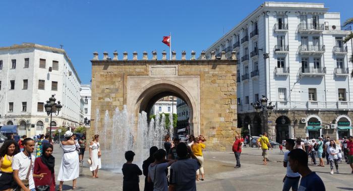 От массивных ворот Баб-эль-Бхар, которые являются как бы разделительной чертой между старой и новой частями Туниса, берет начало широкий центральный проспект – Гранд-авеню Хабиба Бургибы, идущий до кольцевой транспортной развязки у въезда на дамбу Тунисского озера. Кстати, название Баб-эль-Бхар переводится как «Морские врата», поскольку на момент строительства в непосредственной близости от ворот находились воды морской лагуны (Тунисского озера). Теперь Морские врата находятся как минимум в двух километрах от моря…