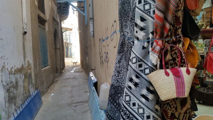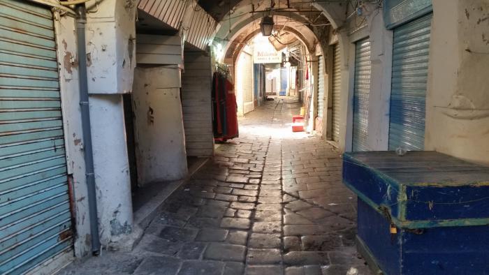 Когда мы бродили по медине, день уже стал клониться к закату, народ вокруг как-то рассосался, и даже продавцов практически не осталось. А я довольно скоро забрел в прямо-таки натуральные, темные и пустынные, катакомбы с запертыми по обе стороны узкого прохода дверями.