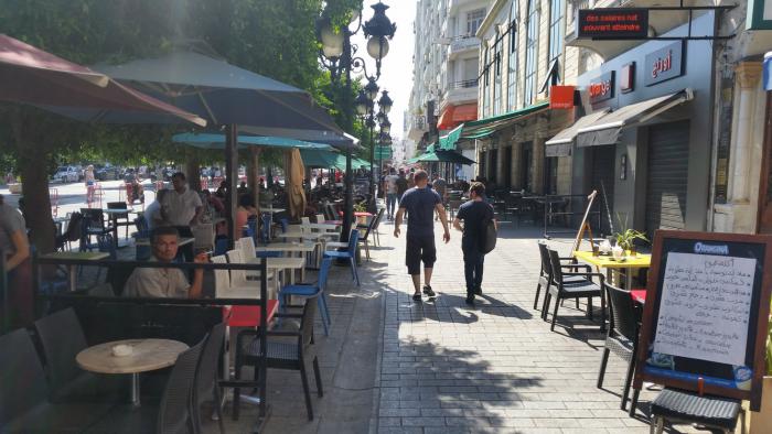 Но в Тунисе это явление поражает своей масштабностью! Впечатление, что процентов 90 здешних мужиков постоянно сидят в простеньких кафе, где столы и стулья вынесены на улицу, и пьют там чай или кофе, курят кальян и смотрят на прохожих.
