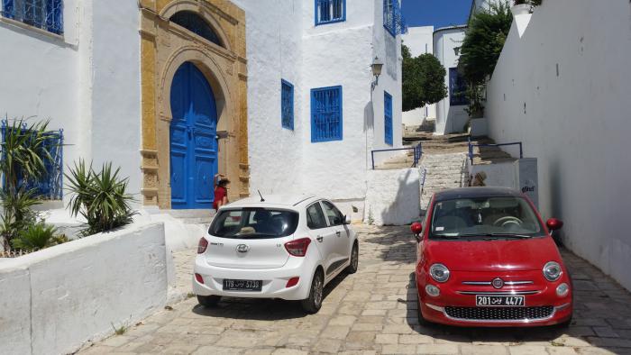 Но и здесь, конечно же, имеются свои «нюансы». Вообще-то, в соответствии с «буквой закона», движение автомобилей по улицам Сиди-Бу-Саида как бы запрещено. Но тунисских водителей это, понятное дело, не останавливает. Поэтому нужно одновременно внимательно смотреть по сторонам и следить за детьми, если таковые имеются. Кроме автомобилей, потенциальную опасность представляют также скутеры и мопеды, коих тоже хватает.