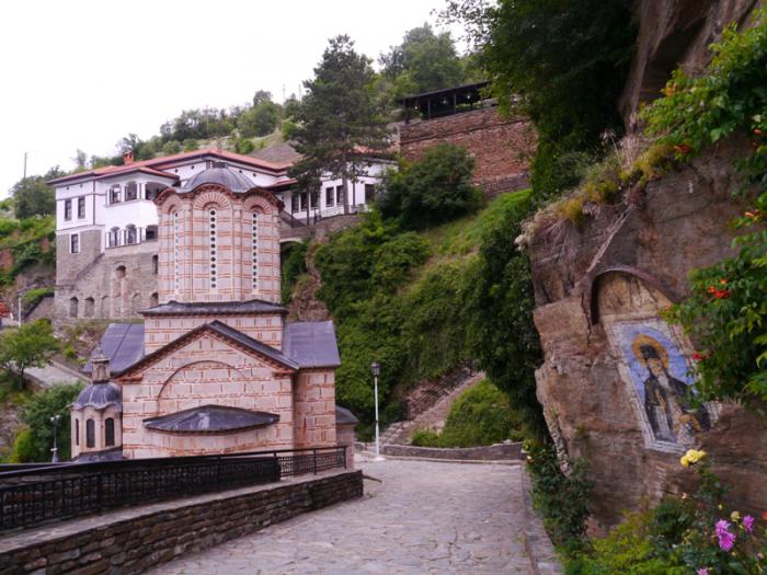 24 июня выехали в Болгарию: скоро кольцо нашего путешествия замкнется. Движемся трассой, связывающей две столицы: Скопье и Софию. Но прежде чем пересечь границу, в районе городка Крива Поланка у речки Крива река поднимаемся к высокогорному монастырю Иоакима Осоговского. Здесь тихо, атмосферно, благостно. И не ведает прах святого отшельника, что за страсти кипят вокруг святыни. На монастырь претендует, на сей раз, Болгария, считая его своим национальным достоянием! Как же трудно самоидентифицироваться молодой стране в XXI веке, когда все вокруг поделено…