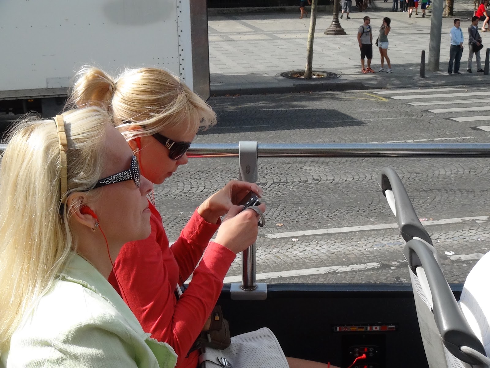 За углом здания Парижской Оперы находится остановка экскурсионного автобуса с аудиогидом. Система также, перемещаешься от достопримечательности к следующей достопримечательности, аудиогид расказывает по ходу движения о достопримечательности. Язык аудиогида можно выбирать. Где хочешь, сходишь, осматриваешь что понравилось и вновь садишься на этот же маршрут автобуса. Маршруты есть разные, Стоимость проезда на день с человека 26 евро. Так, что мы сели поехали любоваться Парижем.