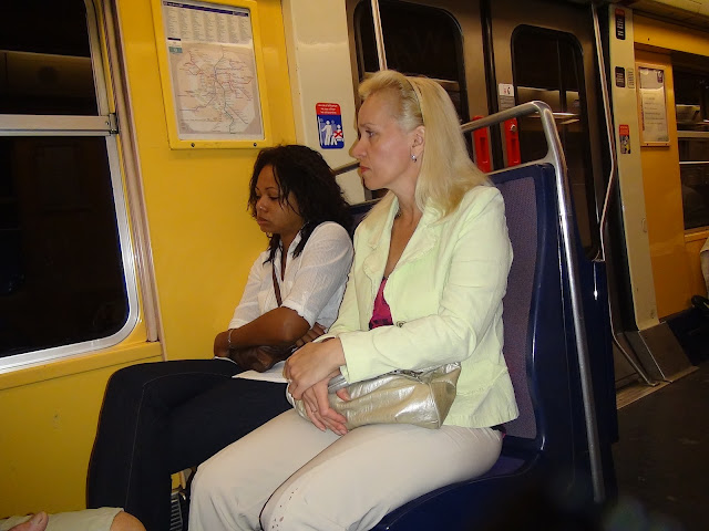 в метро, сели вечером на электричку и поехали в пригород Парижа на ночлег. Завтра поедем в Диснейленд. Вот так...