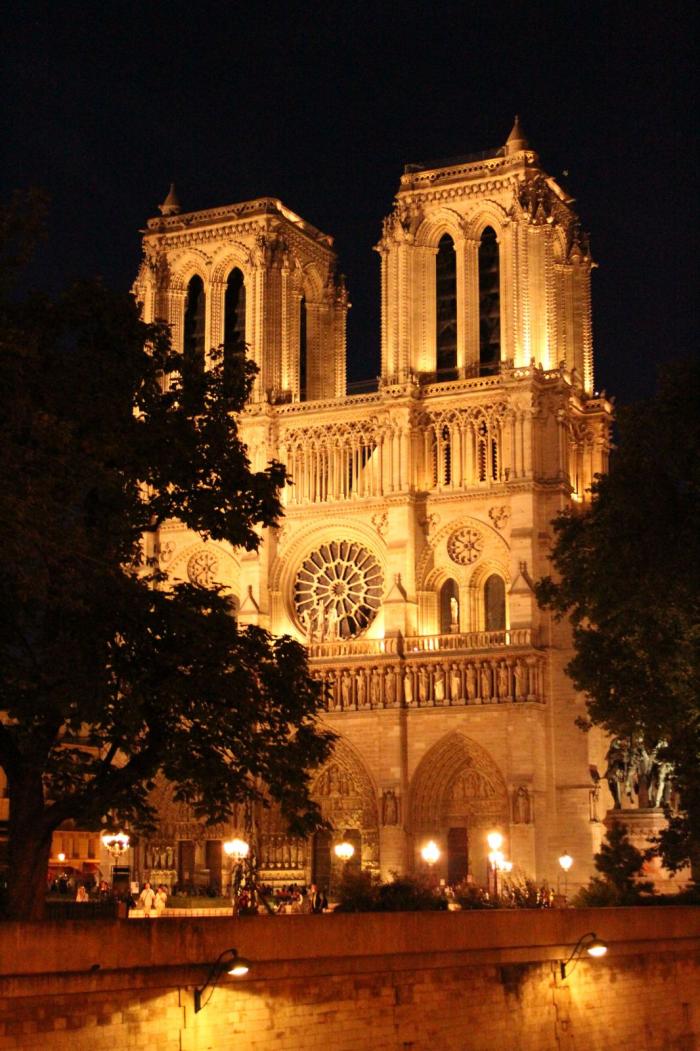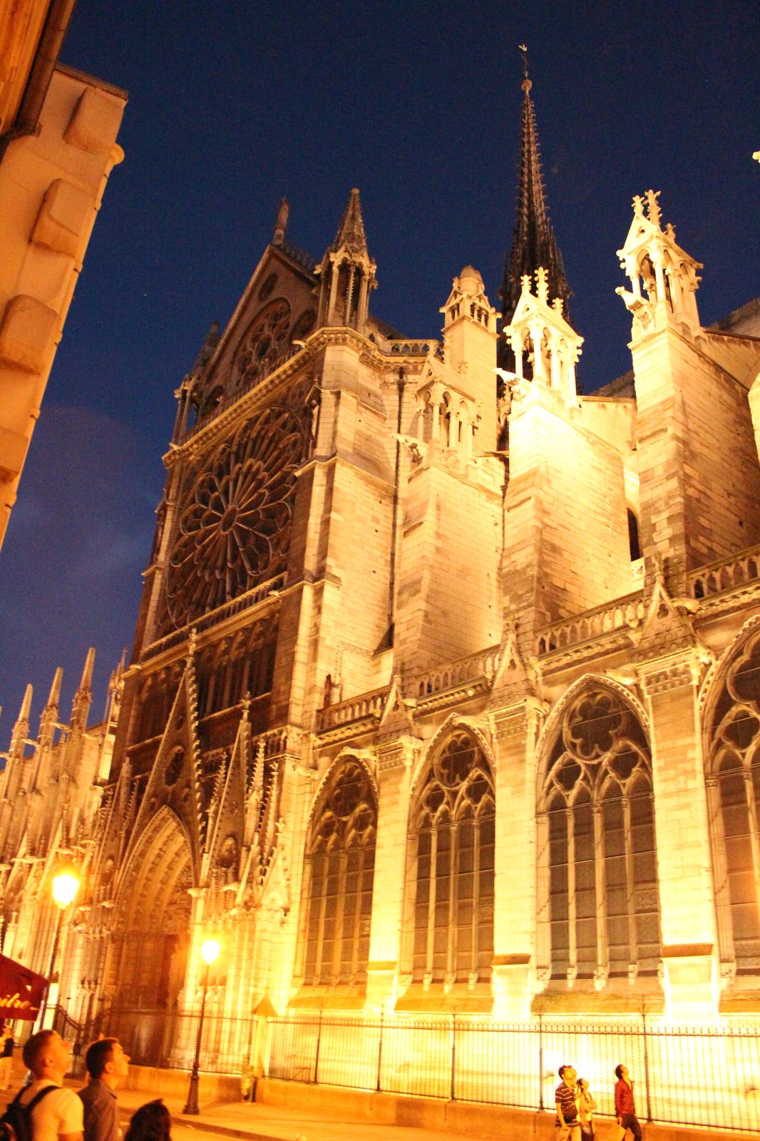 Пешком мы добрались до Собора Парижской Богоматери, посмотрели на него уже когда стемнело…