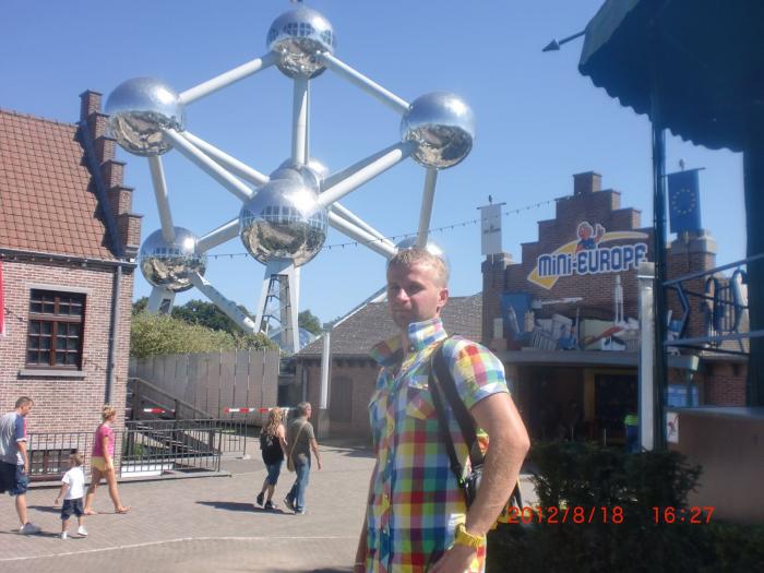 Еще одна достопримечательность Брюсселя-Атомиум, высотой 102м, в нем ужасно жарко, очередь еле движется, всего 1 лифт, короче можно не подниматься на него, а пойти сразу в парк Мини-Европа
