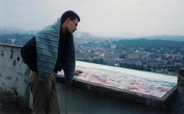 Скорее всё-таки не пятно, а пятнышко навеянное пересмотром фотографий на компьютере. Попался на глаза старый снимок: племянник где-то в Европе, кажется в Чехии, держит за нос железного гнома. На счастье.