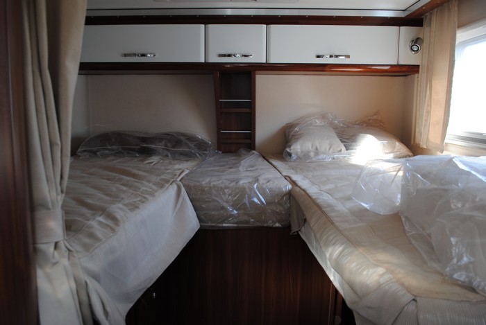 Компания «Яхты на колесах», дилер фирмы Adria, выставила для осмотра самые популярные модели автодомов и караванов, в каждый из которых, мы посчитали своим долгом заглянуть, и что-нибудь «поломать». Среди выставленных домов были знаменитые модели Martix и Polaris. Все дома производят прекрасное впечатление. Идеально продуманная мебель, за счет которой, не пропадает впустую ни одного сантиметра площади. Правда недостатки мы все-равно нашли. Например, в «Полярисе» сильно гремели крепления боковых солнцезащитных шторок.
