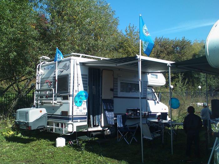 В минувшую субботу, мы съездили на день рождения клуба «Жизнь в путешествии», приглашение на которое было вывешено на сайте. Дорога от нашей дачи (Щелково), до кемпинга Маяк (Химки) заняла целых 3 часа, вместо расчетных 1,5 – 2 часов. На Щелковском шоссе кто-то сбил пешехода и полтора часа мы стояли, почти не двигаясь. Я весь изпсиховался, а ребенка укачало. Но все же, мы прорвались, и к 13-00 въехали на территорию кемпинга. Там нас уже поджидал отец-основатель сайта Автотуристу.ру – Антон, с которым мы заранее договорились пересечься. Все вместе мы направились в сторону кафе, где заседали путешественники, и, пока сын Мишка бегал по улице, немного послушали доклады. После мы отправились к месту стоянки автодомов с целью внимательно все изучить и пощупать.