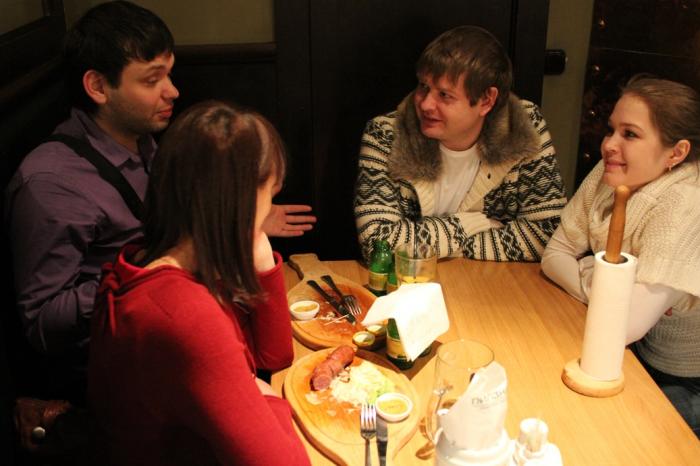 А вот на следующем кадре в фокусе две пары: Тёмыч (соответственно, Артём) со своей «второй половинкой» Аней и asnovikov (тоже Артём), также со спутницей Еленой.