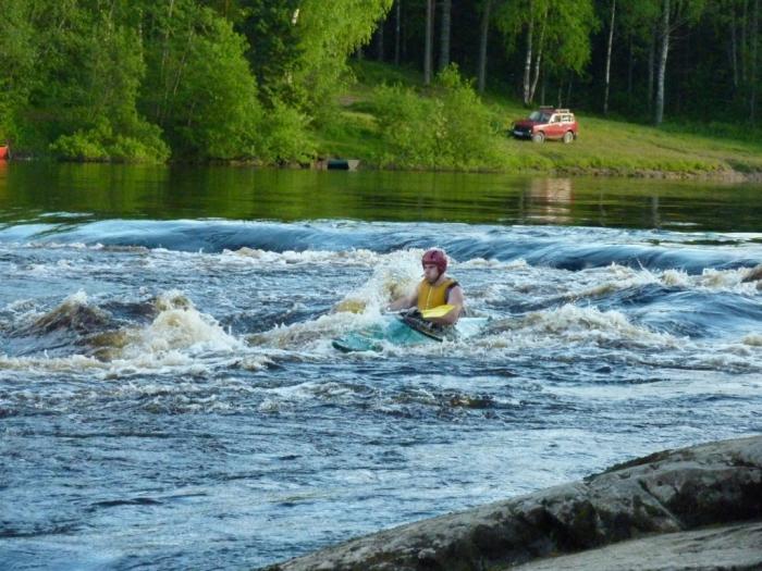 . С каждой минутой становилось все веселее, сначала оказалось, что не хватает деталей для сбора нашего плавательного средства. Мы не растерялись, нашли в лесу машину времен Великой Отечественной и из резины сделали крепеж. Силу и быстроту действий нам придавало напутствие местных о медведях, которые обитают там везде, при том что мы видели след собственными глазами.