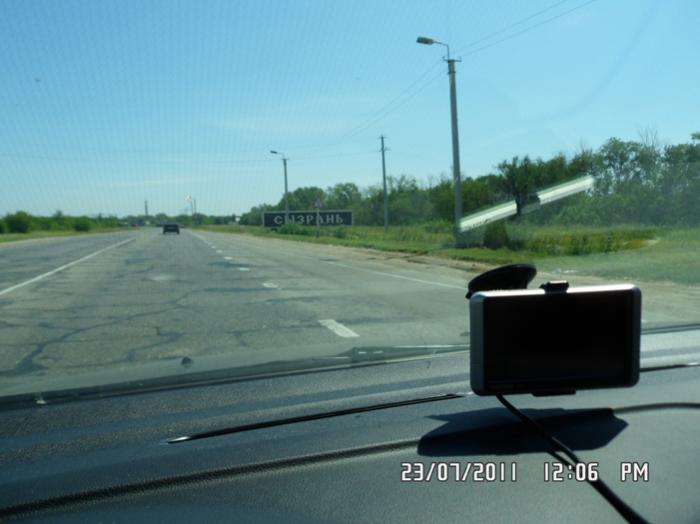 По трассе Москва-Челябинск въезжаем в Сызрань. Сызрань – небольшой городок, расположенный в месте, где река с таким же названием, впадает в Волгу. В обед проезжаем Сызрань. Город основан в 1683 г. воеводой как крепость на высоком обрывистом берегу реки Сызрань, близ впадения её в Волгу, на месте Сызранского городища (4 в. до н.э.). Крепость входила в Сызранскую засечную черту. Название по р. Сызрань, на которой крепость находилась. В описании 18 в. гидроним указывается в формах Сыза, Сызан из татарского сыза «овраг, балка»; элемент -ран может объясняться как показатель чувашского исходного падежа, соответствующий русскому предлогу из, т.е. название тюркское и означает «овражная река; текущая из оврага».