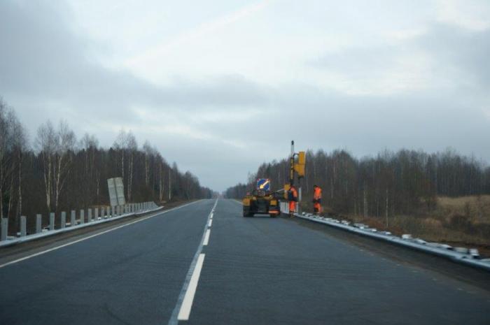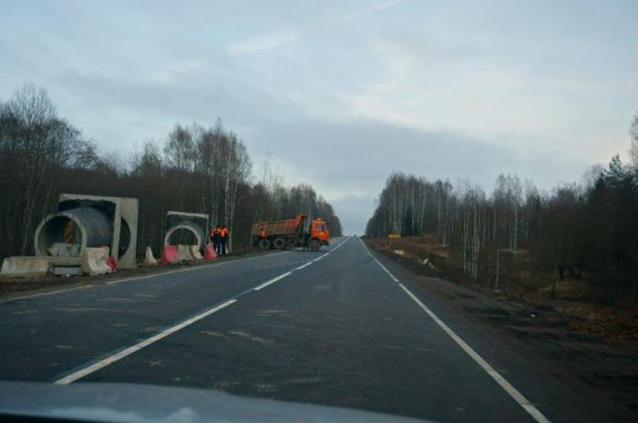 Однако за 280 км до Москвы, работы опять усиливаются, но не глобальные. строители наводят «марафет» на дороге — наносят разметку, устанавливают отбойники итд…