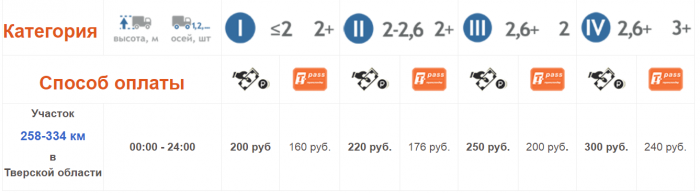 Цены за проезд по платным участкам трассы М11: