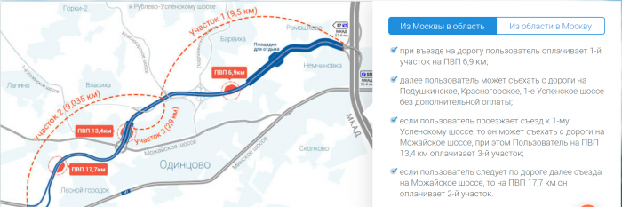 Платный участок дороги: ОБХОД Г. ОДИНЦОВО МОСКОВСКАЯ ОБЛАСТЬ