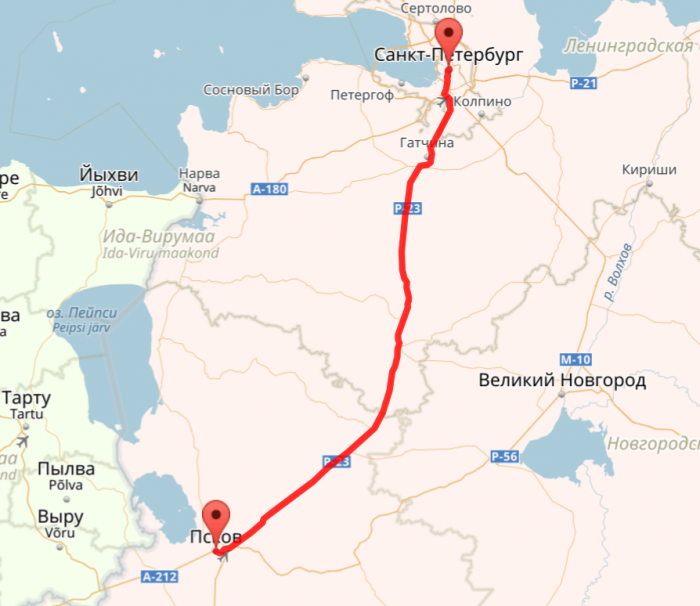 Расстояние от Санкт-Петербурга до Пскова: 293 км; Время в пути: 4:09